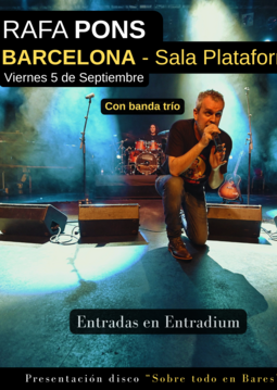 Rafa Pons vuelve a la Sala PLATAFORMA, lugar súper mítico de la noche Barcelonesa y lo hace acompañado de su banda trío con Joan Berenguer al teclado y coros y con Eloi López a la batería.